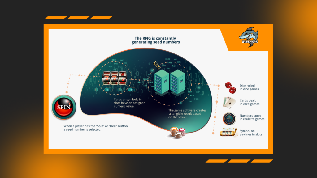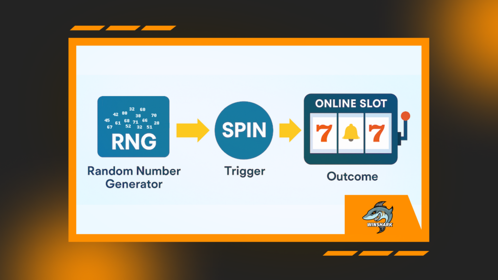 Slots are the classic example of an RNG game. The reels you see are animations. The outcome is decided the moment you press spin, using a number selected by the system. The software then shows a reel stop that matches that outcome.